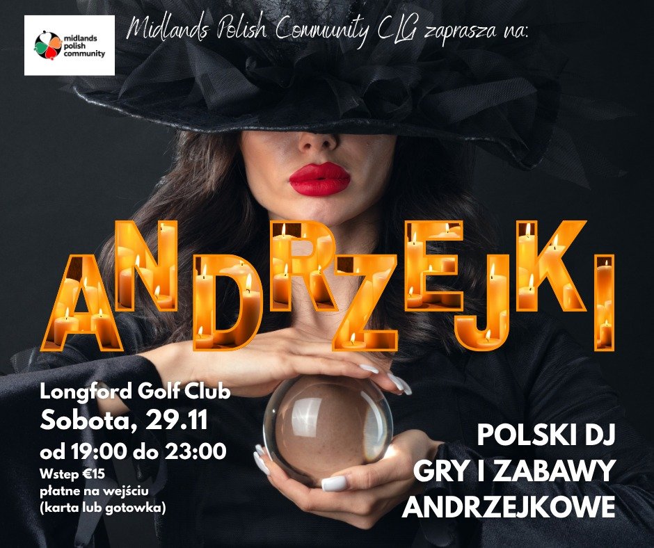[ENG] Come and enjoy some Polish tradition - An-J-Kee (Andrzejki). Music and traditional games that evening will be driven by Polski DJ Irlandia. Start 7pm and finish at 11pm. Longford Golf Club house - bar will be opened all evening. Lottery with great prizes during the evening! Have fun with us and bring your friends for some evening hocus-pocus at Andrzejki night 🙂