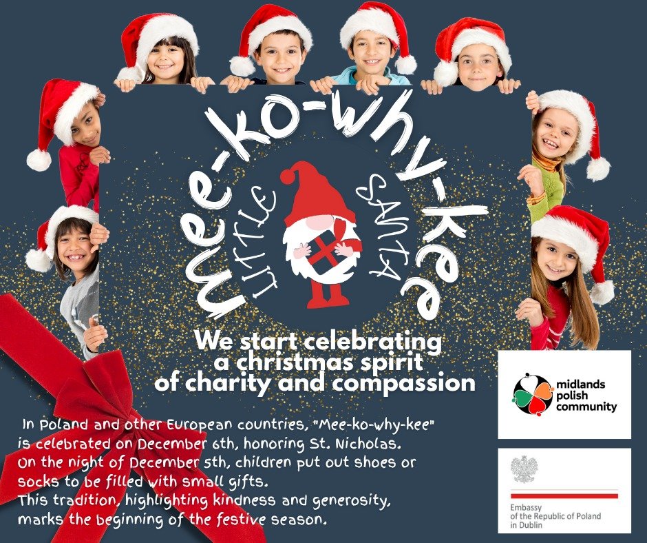 [ENG] This is going to be another season, when Midlands Polish Community is preparing Little Santa gift boxes for children in needs from our local communities. As every year those will be donated to different organizations supported families and children. €870.74 which was fundraised during recent Polish Independence Day celebrations in Drum Community Centre will be also supporting that charity project 'Little Santa' - Mikolajki! We would like to thank to all of you who supported us during Polish Independence Day and for all your donations - thanks to them, we can do more! Sincere thanks to Polish Embassy Dublin for all the support! 🤍❤🎅💚🤍🧡